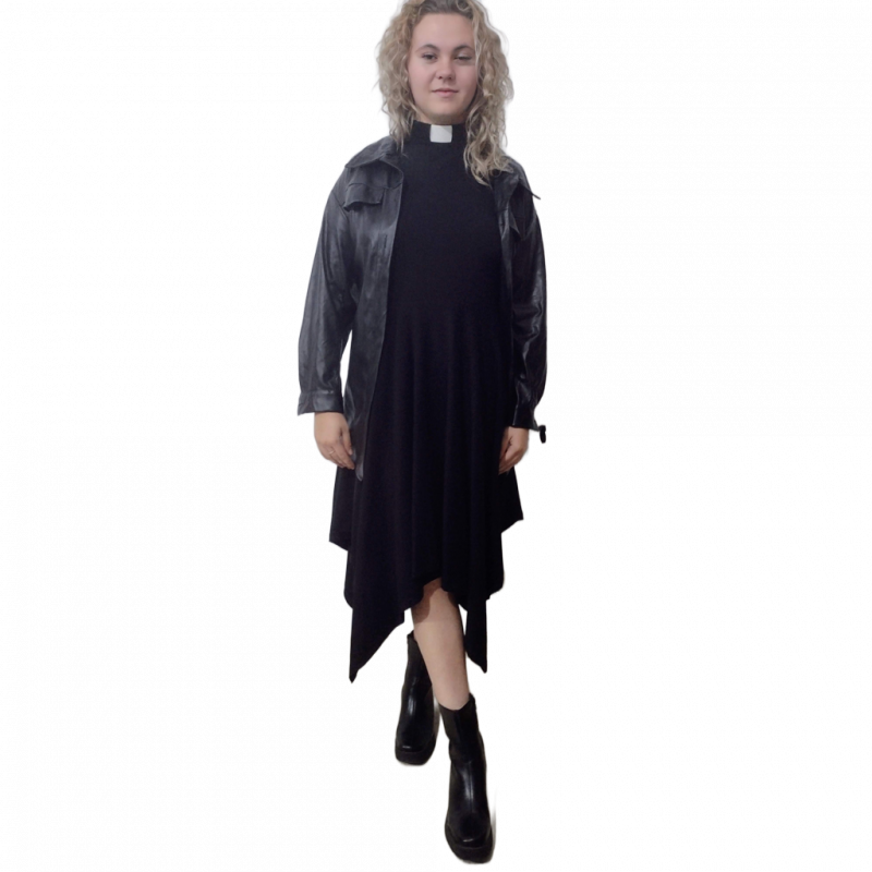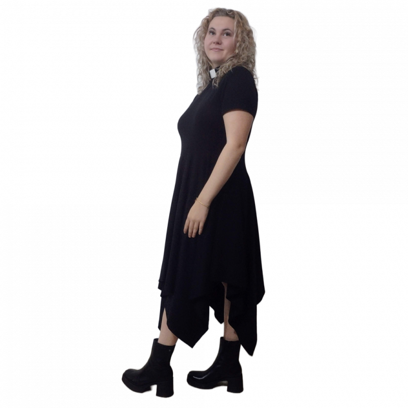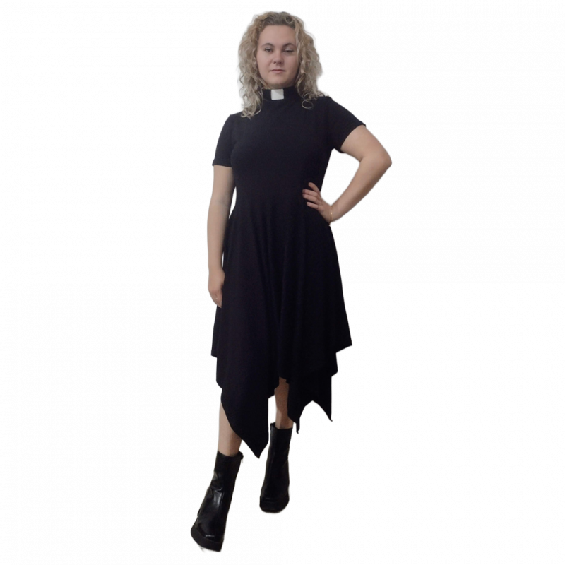 The Madison dress is fitted at the top with a handkerchief skirt. Made out of cotton jersey, it has a zip at the back neck and comes in a wide variety of colours and a choice of sleeve lengths. Pockets can be added for a small extra charge.