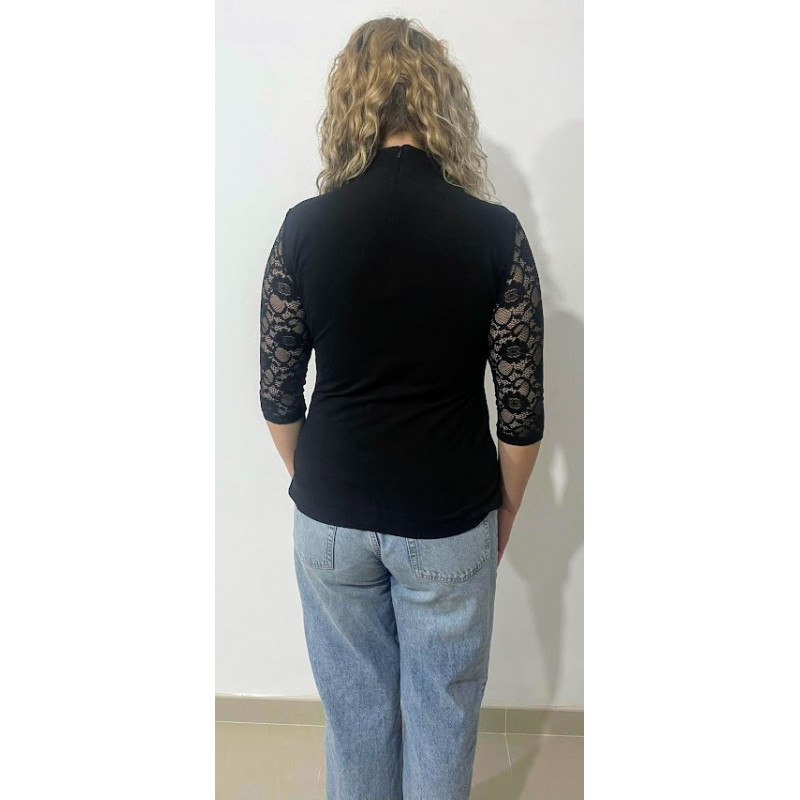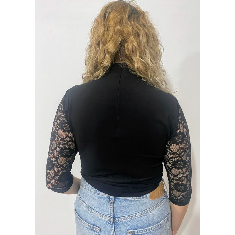 The Margot top is a fitted top with matching lace sleeves. Made out of cotton jersey, it has a zip at the back neck and comes in a choice of sleeve lengths. Only available in black at the moment but new colours will be added soon.