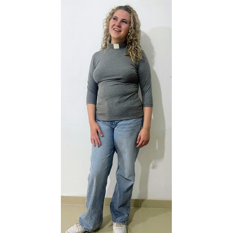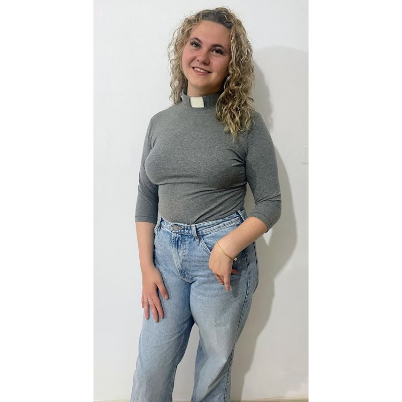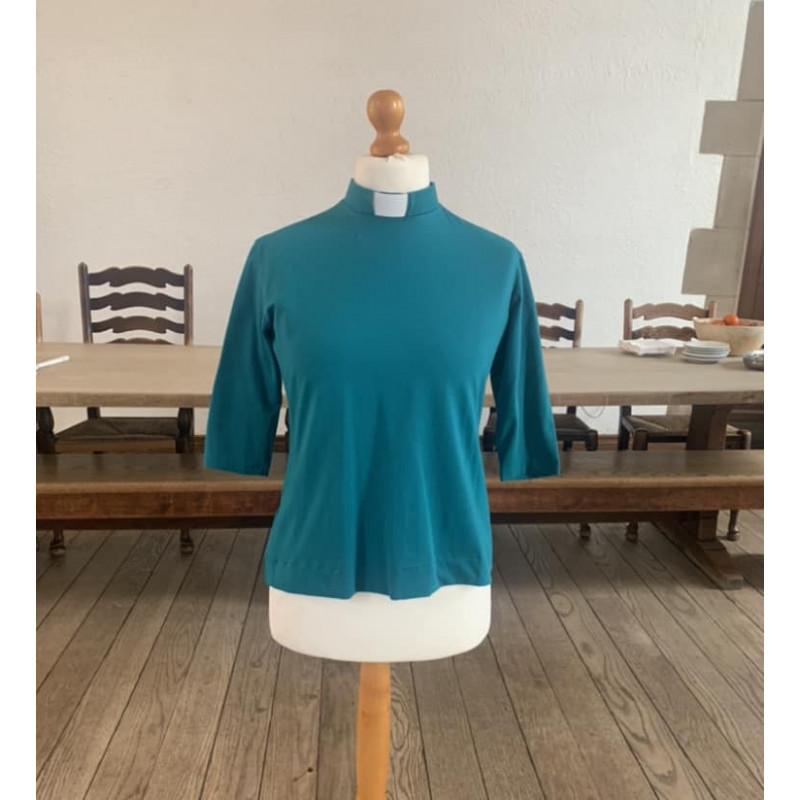 The Michelle top is a fitted top that is an essential part of your collared wardrobe. Made out of cotton jersey, it has a zip at the back neck and comes in a wide variety of colours and a choice of sleeve lengths.