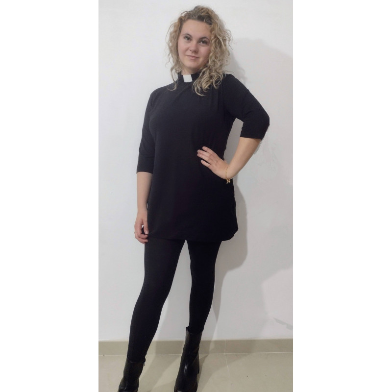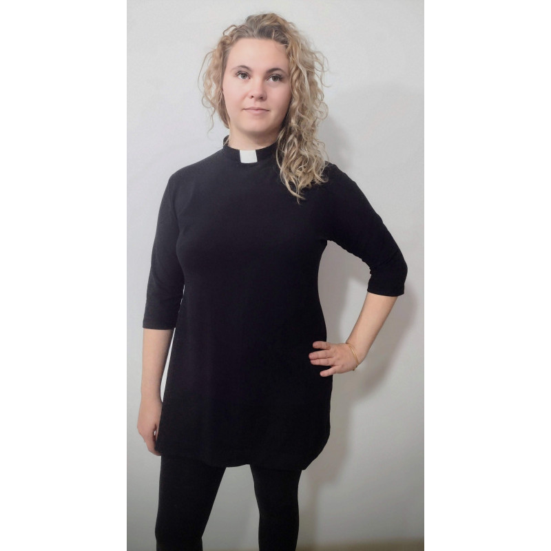 The Michelle tunic is a fitted tunic that is an great addition to your collared wardrobe. Made out of cotton jersey, it has a zip at the back neck and comes in a wide variety of colours and a choice of sleeve lengths. For a small extra charge pockets can be added.